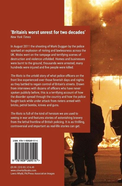 ‘An orgy of wanton, murderous violence’ Tony Parsons ‘Britain’s worst unrest for two decades’ New York Times In August 2011 the shooting of Mark Duggan by the police sparked an explosion of rioting and lawlessness across the UK. Mobs went on the rampage and terrifying scenes of destruction and violence unfolded. Homes and businesses were burnt to the ground, thousands were arrested, many hundreds were injured and five people were killed. The Riots is the untold story of what police officers on the front line experienced over those feverish days and nights as they battled to regain control of Britain’s streets. Drawn from interviews with dozens of officers who have never spoken publicly before, this is a terrifying account of how the disorder spread through the country and how the police fought back while under attack from rioters armed with bricks, petrol bombs, knives and guns. The Riots is full of the kind of heroism we are used to seeing in war and features stories of astonishing bravery from the lethal frontline of British policing. It is as thrilling, controversial and important as real-life stories can get.
