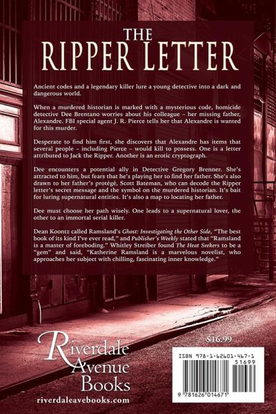 Ancient codes and a legendary killer lure a young detective into a dark and dangerous world. When a murdered historian is marked with a mysterious code, homicide detective Dee Brentano worries about his colleague - her missing father, Alexandre. FBI special agent J. R. Pierce tells her that Alexandre is wanted for this murder. Desperate to find him first, she discovers that Alexandre has items that several people - including Pierce - would kill to possess. One is a letter attributed to Jack the Ripper. Another is an erotic cryptograph. Dee encounters a potential ally in Detective Gregory Brenner. She's attracted to him, but fears that he's playing her to find her father. She's also drawn to her father's protégé, Scott Bateman, who can decode the Ripper letter's secret message and the symbol on the murdered historian. It's bait for luring supernatural entities. It's also a map to locating her father. Dee must choose her path wisely. One leads to a supernatural lover, the other to an immortal serial killer. Dean Koontz called Ramsland's Ghost: Investigating the Other Side, "The best book of its kind I've ever read," and Publisher's Weekly stated that "Ramsland is a master of foreboding." Whitley Streiber found The Heat Seekers to be a "gem" and said, "Katherine Ramsland is a marvelous novelist, who approaches her subject with chilling, fascinating inner knowledge."