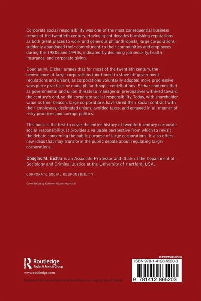 Corporate social responsibility was one of the most consequential business trends of the twentieth century. Having spent decades burnishing reputations as both great places to work and generous philanthropists, large corporations suddenly abandoned their commitment to their communities and employees during the 1980s and 1990s, indicated by declining job security, health insurance, and corporate giving. Douglas M. Eichar argues that for most of the twentieth century, the benevolence of large corporations functioned to stave off government regulations and unions, as corporations voluntarily adopted more progressive workplace practices or made philanthropic contributions. Eichar contends that as governmental and union threats to managerial prerogatives withered toward the century's end, so did corporate social responsibility. Today, with shareholder value as their beacon, large corporations have shred their social contract with their employees, decimated unions, avoided taxes, and engaged in all manner of risky practices and corrupt politics. This book is the first to cover the entire history of twentieth-century corporate social responsibility. It provides a valuable perspective from which to revisit the debate concerning the public purpose of large corporations. It also offers new ideas that may transform the public debate about regulating larger corporations.