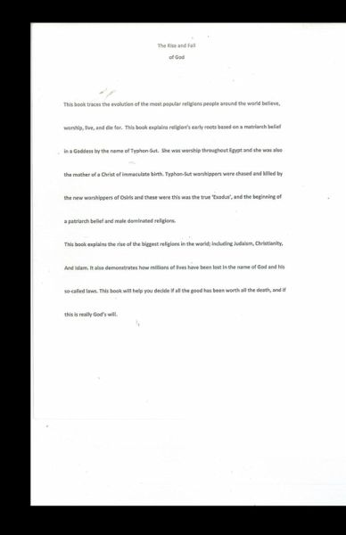 This book traces the evolution of the most popular religions people around the world believe, worship, live and die for. This book explains religion¿s early roots based on a matriarch belief in a Goddess by the name of Typhon-Sut. She was worshiped throughout Egypt and she was also the mother of a Christ of immaculate birth. Typhon-Sut worshipers were chased and killed by the new worshipers of Osiris and this was the true ¿Exodus¿, and the beginning of a patriarch belief and male dominated religion. This book explains the rise of the biggest religions in the world, which are Judaism, Christianity, and Islam. It also describes how millions of lives have been lost in the name of God and his so-called laws. This book will help you decide if all the good has been worth all the death, and if this is really God¿s will.