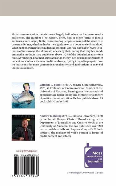 Mass communication theories were largely built when we had mass media audiences. The number of television, print, film or other forms of media audiences were largely finite, concentrating people on many of the same core content offerings, whether that be the nightly news or a popular television show. What happens when those audiences splinter? The Rise and Fall of Mass Communication surveys the aftermath of exactly that, noting that very few modern media products have audiences above 1-2% of the population at any one time. Advancing a new media balkanization theory, Benoit and Billings neither lament nor embrace the new media landscape, opting instead to pinpoint how we must consider mass communication theories and applications in an era of ubiquitous choice.