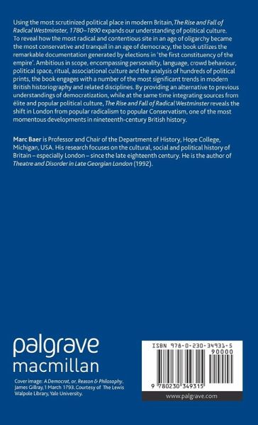 The Rise and Fall of Radical Westminster, 1780-1890 explores a critical chapter in the story of Britain's transition to democracy. Utilising the remarkably rich documentation generated by Westminster elections, Baer reveals how the most radical political space in the age of oligarchy became the most conservative and tranquil in an age of democracy.