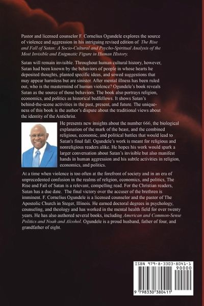 The revised edition of The Rise and Fall of Satan: A Socio-Cultural and Psycho-Spiritual Analysis of the Most Invisible and Enigmatic Figure in Human History is an insightful text that views Satan from a diverse range of perspectives in a way that's never been done before. After mental illness has been ruled out, every society has groped to find out the mind behind human violence, wanton brutality, the unruly behavior of a child toward its parents, and the destructive nature of a political dictator. In the absence of mental illness, The Rise and Fall of Satan reveals Satan as the source of those behaviors. By embracing arrogance and disobeying higher moral laws like Satan, people can lose themselves to evil without any hope of returning to their once-righteous lives. Do you know that there were religious, political, and economic motives behind Elijah's three-and-a-half-year drought in ancient Israel? The Rise and Fall of Satan presents Religion, Economics, and Politics as historical bedfellows and reveals the behind-the-scenes activities of Satan within the three spheres. Readers will learn new concepts about who the Antichrist is, gain new insight about the mark of the beast, and acquire a new understanding of the final religious, economic, and political battles that would lead to Satan's final fall. Satan will forever remain invisible. Fortunately, The Rise and Fall of Satan is meant for religious and nonreligious readers alike. The author presented three indisputable world-renowned historical and Biblical figures whom he called Satan-Incarnates as evidence of Satan's existence. After reading this book, no one will ever be confused about Satan's identity and activities or deny his invisible existence. For Christian readers, Satan has a due date. The final victory over the accuser of the brethren is imminent.