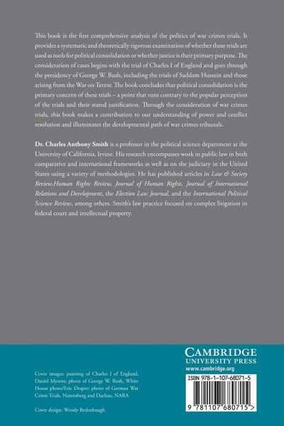 This book is the first comprehensive analysis of the politics of war crimes trials. It provides a systematic and theoretically rigorous examination of whether these trials are used as tools for political consolidation or whether justice is their primary purpose. The consideration of cases begins with the trial of Charles I of England and goes through the presidency of George W. Bush, including the trials of Saddam Hussein and those arising from the War on Terror. The book concludes that political consolidation is the primary concern of these trials - a point that runs contrary to the popular perception of the trials and their stated justification. Through the consideration of war crimes trials, this book makes a contribution to our understanding of power and conflict resolution and illuminates the developmental path of war crimes tribunals.