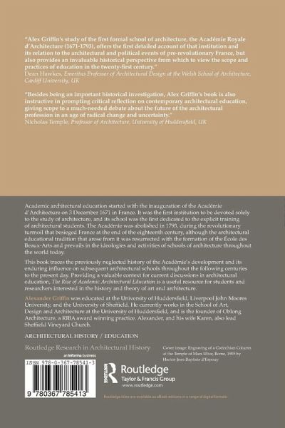 This book traces the previously neglected history of the Académie's development and its enduring influence on subsequent architectural schools throughout the following centuries to the present day. Providing a valuable context for current discussions in architectural education, The Rise of Academic Architectural Education is a useful resource for students and researchers interested in the history and theory of art and architecture.