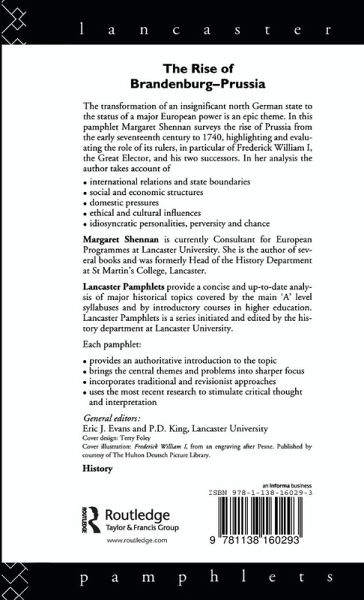 Incorporating international and domestic relations and economic and cultural influences, Shennan surveys the rise of Prussia from the early 17th century to 1740, highlighting and evaluating the role of its rulers and their idiosyncracies.
