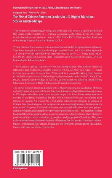 This book is a collection of stories and reflections that represent Chinese American leaders and depict their tortuous journeys in U.S. higher education that comes at a critical point in time. Many books have been devoted to academic leadership, but this volume uniquely focuses on subjects most relevant to Chinese Americans. We live at a time that not only witnesses an increase in Chinese American leaders on U.S. campuses but also mounting incidents of discriminatory treatment of this group. This book showcases 36 stories and reflections from past, present, and future leaders, including the five previously published stories. They represent leaders holding different ideological values in various academic fields, positions, stages of careers, professional trajectories, generations, Chinese ethnic groups, and geographical locations. The Rise of Chinese American Leaders in U.S. Higher Education makes a valuable contribution to the body of literature that has assisted countless academicleaders in navigating their careers, bringing to the forefront a distinct group of academic leaders who have been underrepresented.