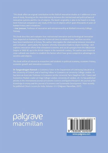 This book describes and evaluates how institutional innovation and technological innovation have impacted on humanity from pre-historical times to modern times, and how societies have been transformed in history. The author interrogates the relationship between innovation and civilisation -- particularly the dynamic whereby innovation leads to empire-building -- and explores innovation efforts that stimulated economic and social synergies from the Babylonian Empire in 1900 BC up to the British Empire in the twentieth century. The author uses historical cross-cultural case studies to establish the factors which have given competitive advantages to societies and empires. This book will be of interest to researchers and students in political economy, economic history, economic growth and innovation economics.