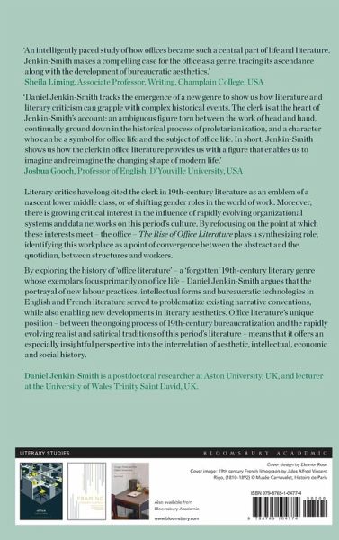 Explores the social and cultural history of bureaucratization in 19th-century Britain and France via the evolving literary portrayal of office life. Literary critics have long cited the clerk in 19th-century literature as an emblem of a nascent lower middle class, or of shifting gender roles in the world of work. Moreover, there is growing critical interest in the influence of rapidly evolving organizational systems and data networks on this period's culture. By refocusing on the point at which these interests meet - the office - The Rise of Office Literatureplays a synthesizing role, identifying this workplace as a point of convergence between the abstract and the quotidian, between structures and workers. By exploring the history of 'office literature' - a 'forgotten' nineteenth-century literary genre whose exemplars focus primarily on office life - Daniel Jenkin-Smith argues that the portrayal of new labour practices, intellectual forms and bureaucratic technologies in English and French literature served to problematize existing narrative conventions, while also enabling new developments in literary aesthetics. Office literature's unique position - between the ongoing process of nineteenth-century bureaucratization and the rapidly evolving realist and satirical traditions of this period's literature - means that it offers an especially insightful perspective onto the interrelation of aesthetic, intellectual, economic and social history.