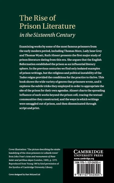 Examining works by some of the most famous prisoners from the early modern period including Thomas More, Lady Jane Grey and Thomas Wyatt, Ruth Ahnert presents the first major study of prison literature dating from this era. She argues that the English Reformation established the prison as an influential literary sphere. In the previous centuries we find only isolated examples of prison writings, but the religious and political instability of the Tudor reigns provided the conditions for the practice to thrive. This book shows the wide variety of genres that prisoners wrote, and it explores the subtle tricks they employed in order to appropriate the site of the prison for their own agendas. Ahnert charts the spreading influence of such works beyond the prison cell, tracing the textual communities they constructed, and the ways in which writings were smuggled out of prison and then disseminated through script and print.