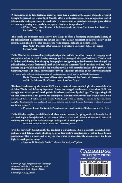 The Israeli Right first came to power nearly four decades ago. Its election was described then as 'an earthquake', and its reverberations are still with us. How then did the Right rise to power? What are its origins? Colin Shindler traces this development from the birth of Zionism in cosmopolitan Odessa in the nineteenth century to today's Hebron, a centre of radical Jewish nationalism. He looks at central figures such as Vladimir Jabotinsky, an intellectual and founder of the Revisionist movement and Menahem Begin, the single-minded politician who brought the Right to power in 1977. Both accessible and comprehensive, this book explains the political ideas and philosophies that were the Right's ideological bedrock and the compromises that were made in its journey to government.