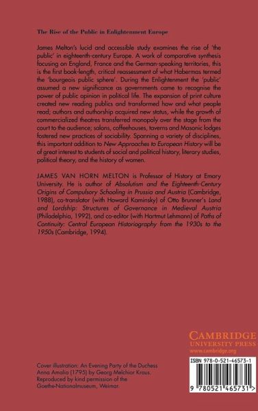James Melton's lucid and accessible study examines the rise of 'the public' in eighteenth-century Europe.
