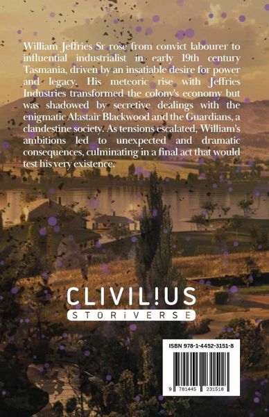 William Jeffries Sr. rose from convict labourer to influential industrialist in early 19th century Tasmania, driven by an insatiable desire for power and legacy. His meteoric rise with Jeffries Industries transformed the colony's economy but was shadowed by secretive dealings with the enigmatic Alastair Blackwood and the Guardians, a clandestine society. As tensions escalated, William's ambitions led to unexpected and dramatic consequences, culminating in a final act that would test his very existence.