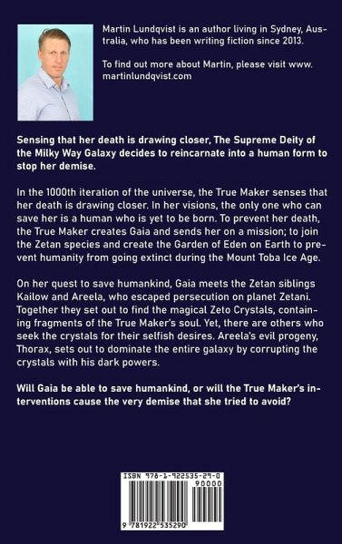 Sensing that her death is drawing closer, The Supreme Deity of the Milky Way Galaxy decides to reincarnate into a human form to stop her demise. In the 1000th iteration of the universe, the True Maker senses that her death is drawing closer. In her visions, the only one who can save her is a human who is yet to be born. To prevent her death, the True Maker creates Gaia and sends her on a mission; to join the Zetan species and create the Garden of Eden on Earth to prevent humanity from going extinct during the Mount Toba Ice Age. On her quest to save humankind, Gaia meets the Zetan siblings Kailow and Areela, who escaped persecution on planet Zetani. Together they set out to find the magical Zeto Crystals, containing fragments of the True Maker's soul. Yet, there are others who seek the crystals for their selfish desires. Areela's evil progeny, Thorax, sets out to dominate the entire galaxy by corrupting the crystals with his dark powers. Will Gaia be able to save humankind, or will the True Maker's interventions cause the very demise that she tried to avoid?
