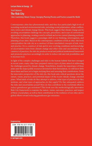 Contemporary cities face phenomenal risks, and they face particularly high levels of mounting social and environmental risks, including social polarization, urban conflicts, riots, terror, and climate change threats. This book suggests that climate change and its resulting uncertainties challenge the concepts, procedures, and scope of conventional approaches to planning, creating a need to rethink and revise current planning methods. Therefore, this book suggests a paradigm shift in our thinking, interrogation, and planning of our cities. Based on the contemporary conditions of risk at cities, this book conceptualizes the risk city as a construct of three interlinked concepts of risk, trust, and practice. It is a construct of risk and its new evolving conditions and knowledge of uncertainties stem from climate change and other risks and uncertainties. As a construct of practices, the risk city produces social and political institutional framework and promotes practices accordingly in order to reduce risk and risk possibilities and to increase trust.