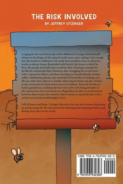 The Risk Involved is a collection of related, creative nonfiction essays that, when read together, constitute a memoir of sorts. The first few essays were written while Jeffrey Utzinger, in his mid-twenties, was working at a chemical plant in Austin, Texas living with his wife in a tiny apartment. The collection wends its way through twenty-five years of rent houses and starter homes, being broke and chasing dreams, adventures in beekeeping, gardening, eating and drinking in excess, fishing, raising children, chickens and ducks, gambling and discovering ways of belonging in different communities. Longing for the rural Kentucky of his childhood, Utzinger finds himself always on the fringes of the natural world, never quite making it far enough into the woods or wilderness. He rarely lives anywhere close to where he works, is almost always dissatisfied with his job, the house in which he lives, the people and traffic that crowd his days. Desiring to simply his life, he consistently fails. However, after struggling for several years with a mysterious illness, and then watching an extended family member suffer a debilitating disease, he's reminded of the futility of wishing one's life was other than what it is. Finally embracing his home and plot of land at the crossroads of a busy intersection in Lockhart, Texas, he decides to build a greenhouse, realizing the best way to live is by being attentive to the environment that surrounds you. Regardless the place or predicament, however, these essays also examine what it means to spend decades with a partner and remain maddeningly in love. Full of humor and hope, Utzinger chronicles the joys and sorrows of growing up and growing old, the risk involved in chasing grand sweeping notions, and finding one's place in the world.