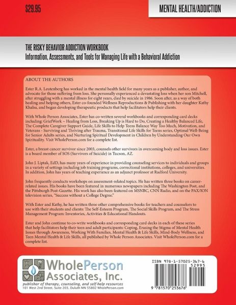 The Risky Behavior Addiction Workbook provides helping professionals with cognitive and behavioral assessments, tools, and exercises that can be utilized to treat the root psychological causes of an addiction to risky behavior. It helps people identify and change negative, unhealthy thoughts and behaviors that may have led to an addiction to thrill-seeking and sensation-seeking. The activities in this workbook can help participants identify the triggers that can lead to an over-engagement in risky or thrilling behavior and help them discover ways to overcome and manage those triggers. The Risky Behavior Addiction Workbook will help participants to achieve the following: · Reflect upon the behaviors that were part of the addiction. · Recognize that they are experiencing an addiction problem. · Understand the triggers for preoccupation with various aspects of risk. · Understand recurring patterns that indicate an addiction to risky behavior. · Learn ways to live a new life without the need to obsess over taking risks. · Develop greater self-acceptance and the ability to change ineffective behaviors. · Build self-esteem in positive capabilities outside of risk-taking and sensation-seeking. The Risky Behavior Addiction Workbook is a practical tool for teachers, counselors, and helping professionals in their work with people suffering from risky behavior addiction. Depending on the role of the person using this workbook and the specific group's or individual's needs, the modules can be used individually or as part of an integrated curriculum. The facilitator can administer an activity with a group or individual or use multiple assessments in a workshop.