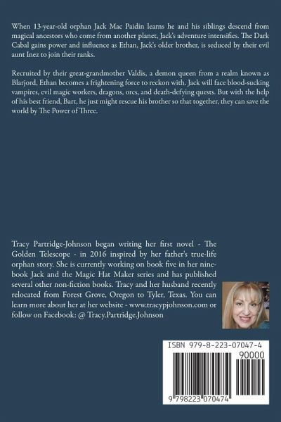 When 13-year-old orphan Jack Mac Paidin learns he and his siblings descend from magical ancestors who come from another planet, Jack's adventure intensifies. The Dark Cabal gains power and influence as Ethan, Jack's older brother, is seduced by their evil aunt Inez to join their ranks. Recruited by their great-grandmother Valdis, a demon queen from a realm known as Blarjord, Ethan becomes a frightening force to reckon with. Jack will face blood-sucking vampires, evil magic workers, dragons, orcs, and death-defying quests. But with the help of his best friend, Bart, he just might rescue his brother so that together, they can save the world by The Power of Three.