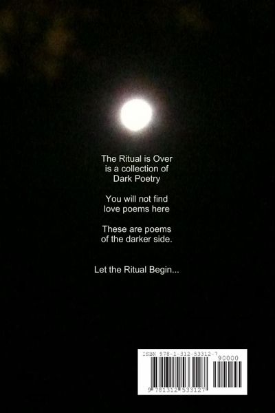 Ritual is over is a collection of Dark Poetry. You will not find love poems here. These poems are written from the a slightly dark side.