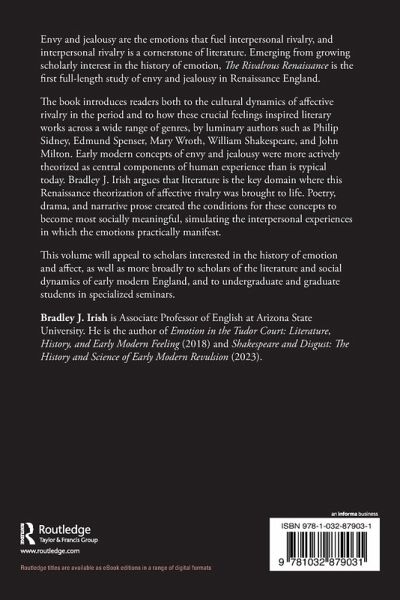 Envy and jealousy are the emotions that fuel interpersonal rivalry, and interpersonal rivalry is a cornerstone of literature. Emerging from growing scholarly interest in the history of emotion, The Rivalrous Renaissance is the first full-length study of envy and jealousy in Renaissance England.