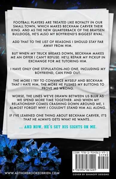 USA Today Bestselling author Brooke O'Brien brings all the hate-to-love feels in this rivals to lovers, small town college football romance. Football players are treated like royalty in our small town, which makes Beckham Carver their king. And as the new quarterback of the Braysen Bulldogs, he's also my boyfriend's biggest rival. Add that to the list of reasons I should stay far away from him. But when my truck breaks down, Beckham makes me an offer I can't refuse: He'll repair my pickup in exchange for me tutoring him. I have only one stipulation-no one, including my boyfriend, can find out. The more I try to convince myself and Beckham that I hate him, the more he pushes my buttons to prove me wrong. Worse, the lines we've drawn between us blur as we spend more time together. And when my relationship comes crashing down around me, I almost forget why I couldn't stand him all along. If I've learned one thing about Beckham Carver, it's that he always gets what he wants... ... and now, he's set his sights on me. The Rivals We Hate features the following tropes: rivals to lovers, sports/football, boyfriend's rival, reformed player, hate to want you, touch her and I'll hurt you, and small college town.