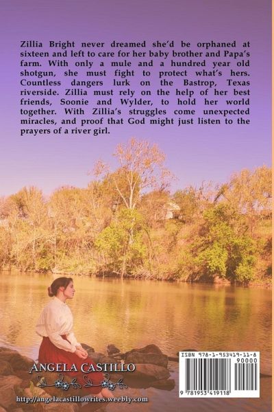 Join a young pioneer girl on a journey of hope and courage on the Colorado riverbank in frontier Texas. Zillia Bright never dreamed she'd be orphaned at sixteen and left to care for her baby brother and Papa's farm. With only a mule and a hundred-year-old shotgun, she must fight to protect what's hers. Countless dangers lurk on the Bastrop Texas riverside. Zillia must rely on the help of her best friends, Soonie and Wylder, to hold her world together. With Zillia's struggles come unexpected miracles, and proof that God might just listen to the prayers of a river girl. Clean and wholesome, faith-based inspirational Christian western frontier fiction with romantic elements. If you enjoy Janette Oke and Tracie Peterson, you will love The Texas Women of Spirit series, which follows three courageous young women on journeys of faith and love. "I recommend this book to everyone. This book was fast, easy to read with a good ending."-Amazon review "Zilla's determination to take good care of Orrie, her hard work on the farm and her faith make this a great Christian novel." -Jane Jones, Amazon top 1000 reviewer "You'll fall in love with the strength of the characters and their ability to overcome hardships by working together."-Amazon reviewer