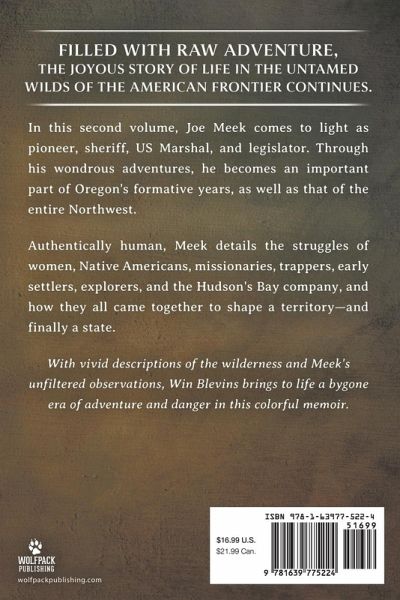 Filled with raw adventure, the joyous story of life in the untamed wilds of the American frontier continues. In this second volume, Joe Meek comes to light as pioneer, sheriff, US Marshal, and legislator. Through his wondrous adventures, he becomes an important part of Oregon's formative years, as well as that of the entire Northwest. Authentically human, Meek details the struggles of women, Native Americans, missionaries, trappers, early settlers, explorers, and the Hudson's Bay company, and how they all came together to shape a territory-and finally a state. With vivid descriptions of the wilderness and Meek's unfiltered observations, Win Blevins brings to life a bygone era of adventure and danger in this colorful memoir.