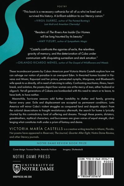 The Rivers Are Inside Our Homes handles themes of loss and exile, aging generations, fable and fairy tale, marriage and hurt, with the island of Cuba at its heart. These incandescent poems by Cuban American poet Victoria María Castells explore how we can salvage our notion of paradise in an overspent Eden. In thwarted homes located in Havana and Miami, Rapunzel and her prince, persecuted nymphs, Morgause, and Bluebeard's wife speak to us directly, all in need of returning to safety. Confronting machismo, illness, heartbreak, and isolation, the poems depict how women are at the mercy of men, either husband or oligarch. Yet all generations of Cubans are bombarded with this need to return or to leave, to have both, to have neither. Meanwhile, hurricane seasons add further instability to shelter and family, growing fiercer every year. Exile and displacement are accepted as permanent conditions. Latin America will mirror Cuba's violent struggles as conquered land and despotic object. From the colonial desecrations to fraught revolutionary aftermath, the search for home is lyrically charted by this contradictory land of suffering and dreams. Through these poems, dictators, grandmothers, mythical characters, and buccaneers are given voices of equal strength, challenging what constitutes truth under a prism of fantasy and desire.