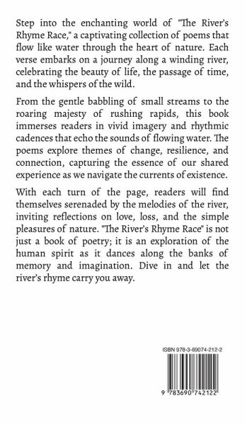 Step into the enchanting world of "The River's Rhyme Race," a captivating collection of poems that flow like water through the heart of nature. Each verse embarks on a journey along a winding river, celebrating the beauty of life, the passage of time, and the whispers of the wild. From the gentle babbling of small streams to the roaring majesty of rushing rapids, this book immerses readers in vivid imagery and rhythmic cadences that echo the sounds of flowing water. The poems explore themes of change, resilience, and connection, capturing the essence of our shared experience as we navigate the currents of existence. With each turn of the page, readers will find themselves serenaded by the melodies of the river, inviting reflections on love, loss, and the simple pleasures of nature. "The River's Rhyme Race" is not just a book of poetry; it is an exploration of the human spirit as it dances along the banks of memory and imagination. Dive in and let the river's rhyme carry you away.