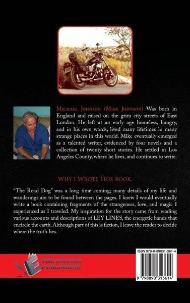 "The Road Dog" was a long time coming; many details of my life and wanderings are to be found between the pages. I knew I would eventually write a book containing fragments of the strangeness, love, and magic I experienced as I traveled. My inspiration for the story came from reading various accounts and descriptions of LEY LINES, the energetic bands that encircle the earth. Although part of this is fiction, I leave the reader to decide where the truth lies.