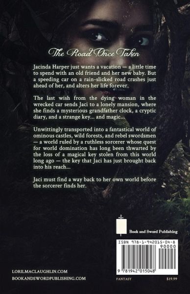 Jacinda Harper just wants a vacation - a little time to spend with an old friend and her new baby. But a speeding car on a rain-slicked road crashes just ahead of her, and alters her life forever. The last wish from the dying woman in the wrecked car sends Jaci to a lonely mansion, where she finds a mysterious grandfather clock, a cryptic diary, and a strange key... and magic... Unwittingly transported into a fantastical world of ominous castles, wild forests, and rebel swordsmen - a world ruled by a ruthless sorcerer whose quest for world domination has long been thwarted by the loss of a magical key stolen from this world long ago - the key that Jaci has just brought back into his reach... Jaci must find a way back to her own world before the sorcerer finds her.