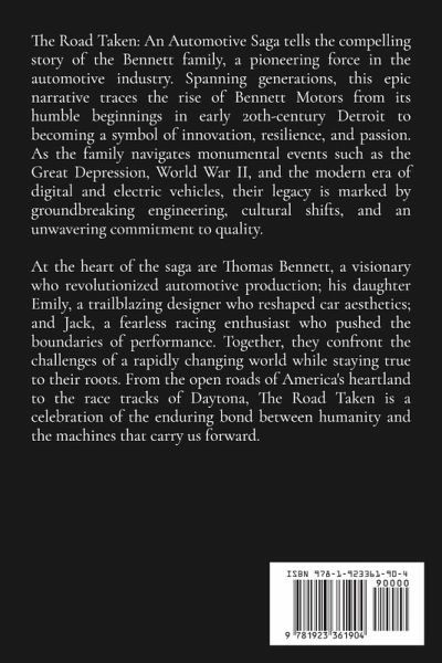 The Road Taken: An Automotive Saga tells the compelling story of the Bennett family, a pioneering force in the automotive industry. Spanning generations, this epic narrative traces the rise of Bennett Motors from its humble beginnings in early 20th-century Detroit to becoming a symbol of innovation, resilience, and passion. As the family navigates monumental events such as the Great Depression, World War II, and the modern era of digital and electric vehicles, their legacy is marked by groundbreaking engineering, cultural shifts, and an unwavering commitment to quality. At the heart of the saga are Thomas Bennett, a visionary who revolutionized automotive production; his daughter Emily, a trailblazing designer who reshaped car aesthetics; and Jack, a fearless racing enthusiast who pushed the boundaries of performance. Together, they confront the challenges of a rapidly changing world while staying true to their roots. From the open roads of America's heartland to the race tracks of Daytona, The Road Taken is a celebration of the enduring bond between humanity and the machines that carry us forward.