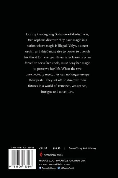 During the ongoing Sudanese-Akkadian war, two orphans discover they have magic in a nation where magic is illegal. Volya, a street urchin and thief, must rise to power to quench his thirst for revenge. Nassa, a reclusive orphan forced to serve her uncle, must deny her magic to preserve her life. When the two unexpectedly meet, they can no longer escape their pasts. They set off to discover their futures in a world of romance, vengeance, intrigue and adventure. Winner of a 2024 Golden Wizard Book Prize!