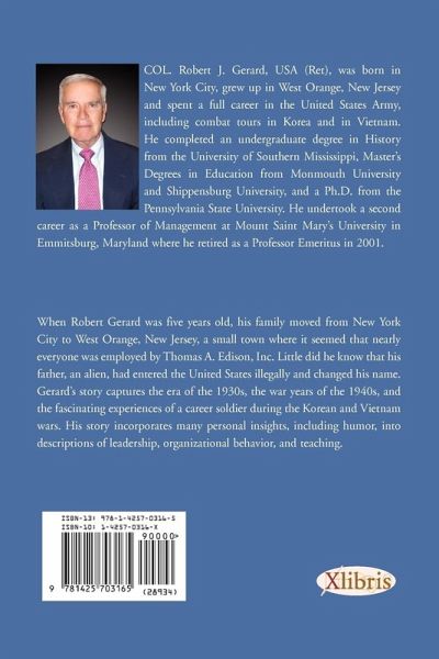 Robert Gerard's life story involves a fascinating journey full of twists, turns, and unexpected events. With no specific career plan in place, things just happened - mostly good things! Along the way, over time, people, events, and places seemed to re-emerge in an intriguing way. Gerard was born in New York City in 1930. He and his mother and father lived on the west side, near Central Park. He didn't know until many years later that his father was an alien who had entered the United States illegally and changed his name. When Robert was just two years old, the FBI came knocking at the apartment off Central Park West. However, they were not looking for illegal aliens. They were looking for the Lindbergh baby! Later, the family moved to West Orange, New Jersey, a small town where it seemed that nearly everyone was employed by Thomas A. Edison, Inc. Gerard's story captures the lean years of the 1930s, prior to World War II, some problems at home, and his escapades as a teen-ager during the war years, including two years of tough discipline at a private boarding school in North Jersey. It was during this period that his father was deported to Belgium from Ellis Island. After graduating from high school, Gerard joined the ranks of those who worked at one of the Edison factories in West Orange. Two older workers, combat veterans from WWII, became his mentors. During the early phases of the Korean War, they shared fascinating stories about their wartime experiences. Bored by factory work, and inspired by his two local heroes, Gerard enlisted in the army in 1951. As a result of some very poor training, Gerard and a good friend decided to apply for admission to Officer Candidate School. Ironically, Robert Gerard, the reluctant applicant, was accepted while his buddy was rejected. After his commissioning, his experience in Korea prompted him to remain in the army. While stationed with the 82d Airborne Division at Fort Bragg, he married a high school classmate in 1954. Together, they had eight children. Gerard describes his assignment as a weapons instructor at Fort Benning, Georgia and then, his experience as a student in the Army's flight school at Fort Rucker, Alabama. An opportunity to complete his undergraduate education took him and his family to Mississippi Southern College in Hattiesburg, Mississippi during the same year that James Meredith became the first black student to be admitted to the University of Mississippi. Gerard's subsequent assignment at the army's Command and General Staff College at Fort Leavenworth, Kansas (1963-1964) was a year filled with major events, including President Kennedy's assassination, the increasing commitment to military support for South Vietnam, and an address by former President Harry Truman. Next, a wonderful assignment in Verona, Italy, where his family lived in a small Italian village, was cut short due to critical needs for army helicopter pilots in Vietnam. He describes his first tour in Vietnam, including the buildup of U.S. conventional forces and the application of air mobility as a part of tactical operations. Also, he had an opportunity to see his brother whose base camp was just several miles away. After returning to the States, he worked in the Pentagon and described both the serious and hilarious events related to surviving in 'The Puzzle Palace." In 1970, his second tour in Vietnam placed him much farther north, near the Demilitarized Zone, where enemy forces consist mostly of North Vietnamese regulars. His description of military operations in Vietnam reflects both the early years as well as the beginning of the drawdown of U.S. forces. After an interesting y