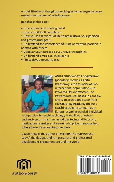 A book filled with thought-provoking activities to guide every reader into the part of self-discovery. Benefits of this book: ? How to deal with limiting belief ? How to build self-confidence ? How to use the wheel of life to break down your personal and professional goals ? Understand the importance of using perception position in relating with others ? Discover your purpose as you travel through life ? Understand emotional intelligence ? Thirty days personal journal
