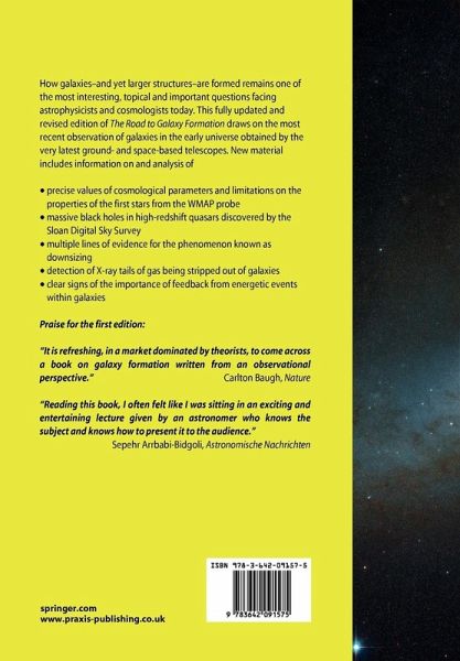 In this second edition the author has retained the observationally-based approach of the first edition, a feature which was particularly well-reviewed: Writing in Nature, Carlton Baugh noted in February 2003 that "It is refreshing, in a market dominated by theorists, to come across a book on galaxy formation written from an observational perspective. The Road to Galaxy Formation should prove to be a handy primer on observations for graduate students, advanced undergraduates and theorists who feel too shy to visit a telescope".