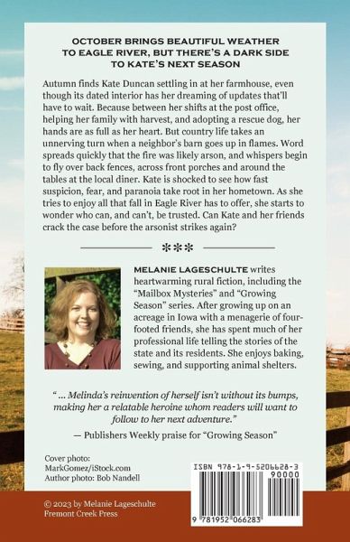 October brings beautiful weather to Eagle River, but there's a dark side to Kate's next season. Autumn finds Kate Duncan settling in at her farmhouse, even though its dated interior has her dreaming of updates that'll have to wait. Because between her shifts at the post office, helping her family with harvest, and adopting a rescue dog, her hands are as full as her heart. But country life takes an unnerving turn when a neighbor's barn goes up in flames. Word spreads quickly that the fire was likely arson, and the whispers begin to fly over back fences, across front porches and around the tables at the local diner. Kate is shocked to see how fast suspicion, fear, and paranoia take root in her hometown. As she tries to enjoy all that fall in Eagle River has to offer, she starts to wonder who can, and can't, be trusted. Can Kate and her friends crack the case before the arsonist strikes again? Don't miss the second book in this series!