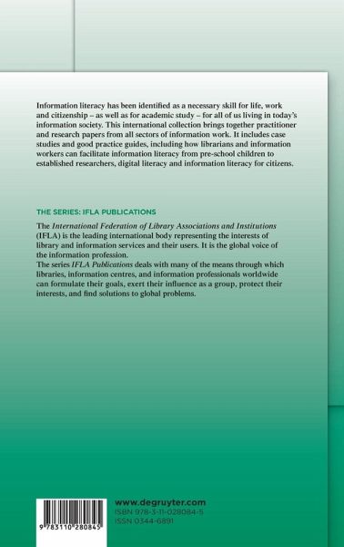 Information literacy has been identified as a necessary skill for life, work and citizenship - as well as for academic study - for all of us living in today's information society. This international collection brings together practitioner and research papers from all sectors of information work. It includes case studies and good practice guides, including how librarians and information workers can facilitate information literacy from pre-school children to established researchers, digital literacy and information literacy for citizens.
