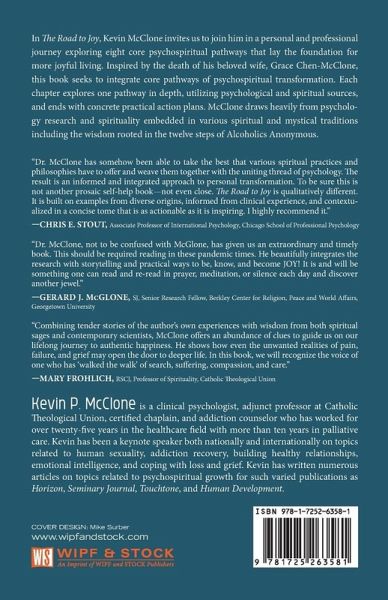 In The Road to Joy, Kevin McClone invites us to join him in a personal and professional journey exploring eight core psychospiritual pathways that lay the foundation for more joyful living. Inspired by the death of his beloved wife, Grace Chen-McClone, this book seeks to integrate core pathways of psychospiritual transformation. Each chapter explores one pathway in depth, utilizing psychological and spiritual sources, and ends with concrete practical action plans. McClone draws heavily from psychology research and spirituality embedded in various spiritual and mystical traditions including the wisdom rooted in the twelve steps of Alcoholics Anonymous.