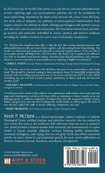 In The Road to Joy, Kevin McClone invites us to join him in a personal and professional journey exploring eight core psychospiritual pathways that lay the foundation for more joyful living. Inspired by the death of his beloved wife, Grace Chen-McClone, this book seeks to integrate core pathways of psychospiritual transformation. Each chapter explores one pathway in depth, utilizing psychological and spiritual sources, and ends with concrete practical action plans. McClone draws heavily from psychology research and spirituality embedded in various spiritual and mystical traditions including the wisdom rooted in the twelve steps of Alcoholics Anonymous.