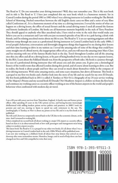 The Road to 'L' Do you remember your driving instructor? Well, they sure remember you. This is My next book and its title is The Road to 'L' I have just completed this my next book which is a humorous memoir. Set in Central London during the period 1981 to 1983 when I was a driving instructor in London working for The British School of Motoring. Pitched somewhere between the old English classic carry-on films and a series of sexy films called Confessions of... It is a humorous memoir of my time as a driving instructor; I reveal the stories of what can happen on a driving lesson, the offers of sexual favours and the actual driving routes I used all around the famous and historic landmarks of London. My books are all humorous memoirs hopefully in the style of Terry Pratchett They should appeal to anybody who likes anecdotal tales, I have tried to write in the style that would make you believe you are in a restaurant and I am with you just recounted episodes of my life or in a pub having a drink with friends, and I'm relating anecdotal stories about my life to you. The Road to 'L' is an eye-opening poignant and often hilarious romp through my years as a professional driving instructor in Central London back in the early 1980s. I reveal people's behaviour, conversations and downright dangerous things that happened to me during their lessons and their time learning to drive in my tuition car. I reveal the amazing tales of some of the things that could have come straight out of a Bond movie, the inappropriate offers of sex, and you will meet the amazing sister Mary Clara and her meeting with one of the famous Beatles back in the day. Travel throughout London and all the amazing sites this city offers and all on a driving lesson, or be part of being bombed twice in one day on two separate lessons, by the IRA. Learn about the Falkland Islands war, from the perspective of both sides. My book is a journey through the eyes of a professional driving instructor that will amaze you and also amuse you. It gives you a chronological history of the world events that affected London during this period, and of course about learning to drive a car. But in reality, the book is about people and how they can reveal so much about themselves whilst in the company of their driving instructor. With some amazing stories, and some scary situations, but above all humour. This book is a prequel to my first two books and a further look into the story of my life and my search for my own El Dorado. My first book published back in 2011 is called A Turnkey or Not? It is a biography of my 25-year service working in Her Majesty's Prisons and my second book El Dorado? No! Heathrow Airport is a follow on from the first book and continues my working career as a security officer working at one of the busiest airports in the world and people's behaviour when confronted with modern-day air travel.