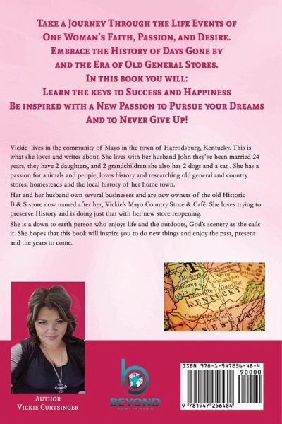 Vickie lives in the community of Mayo in the town of Harrodsburg, Kentucky. This is what she loves and writes about. She lives with her husband John they've been married 24 years, they have 2 daughters, and 2 grandchildren she also has 2 dogs and a cat. She has a passion for animals and people, loves history and researching old general and country stores, homesteads and the local history of her home town. Her and her husband own several businesses and are new owners of the old Historic B & S store now named after her, Vickie's Mayo Country Store & Café. She loves trying to preserve History and is doing just that with her new store reopening. She is a Christian and has a passion for working in the Church, singing, playing the piano, teaching, and working with the widows a ministry group she created for her local church. She previously was the owner of a primitive gift shop in 2005, and currently has a clothing and jewelry boutique online and sets up at events in 2016 and still runs it today. Her story is about her life events and history in the towns she was born and raised. The inspiration to write this book came years ago, but, is just now being put into words. The main reason and idea that came for the book started from her being born at home and her father delivering her at home even though it was a thing of the past, not something you hear about frequently as in the 1800s and early 1900s. She is a down to earth person who enjoys life and the outdoors, God's scenery as she calls it. She hopes that this book will inspire you to do new things and enjoy the past, present and the years to come.