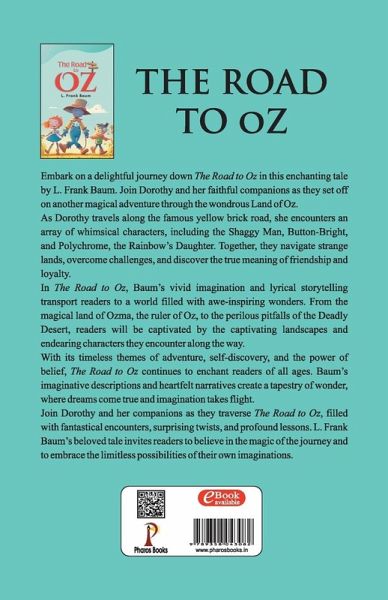 Embark on a delightful journey down The Road to Oz in this enchanting tale by L. Frank Baum. Join Dorothy and her faithful companions as they set off on another magical adventure through the wondrous Land of Oz. As Dorothy travels along the famous yellow brick road, she encounters an array of whimsical characters, including the Shaggy Man, Button-Bright, and Polychrome, the Rainbow's Daughter. Together, they navigate strange lands, overcome challenges, and discover the true meaning of friendship and loyalty. In The Road to Oz, Baum's vivid imagination and lyrical storytelling transport readers to a world filled with awe-inspiring wonders. From the magical land of Ozma, the ruler of Oz, to the perilous pitfalls of the Deadly Desert, readers will be captivated by the captivating landscapes and endearing characters they encounter along the way. With its timeless themes of adventure, self-discovery, and the power of belief, The Road to Oz continues to enchant readers of all ages. Baum's imaginative descriptions and heartfelt narratives create a tapestry of wonder, where dreams come true and imagination takes flight. Join Dorothy and her companions as they traverse The Road to Oz, filled with fantastical encounters, surprising twists, and profound lessons. L. Frank Baum's beloved tale invites readers to believe in the magic of the journey and to embrace the limitless possibilities of their own imaginations.