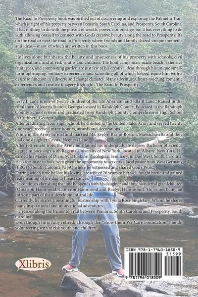 The Road to Prosperity book was birthed out of discovering and exploring the Palmetto Trail, which is right off his property between Pomaria, South Carolina, and Prosperity, South Carolina. It has nothing to do with the pursuit of wealth, power, nor prestige, but it has everything to do with allowing oneself to connect with God's creative beauty along the road to Prosperity. It's on the road or near the road to Prosperity where friends and family shared unique moments and ideas-many of which are written in this book. He lives alone but shares the beauty and uniqueness of his property with schools, civil organizations, and at-risk youths and children. The boot camp, man-made beach, extensive fruit trees, and composting garden are just few of his creative ideas through his unique small-farm upbringing, military experience, and schooling, all of which helped equip him with a desire to function in a diverse and change climates. Many adventures, heart-touching and romantic experiences, creative imagery highlights The Road to Prosperity.