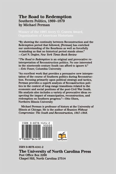 One of the most dramatic episodes in American history was the attempt to establish a two-party political system in the South during Reconstruction. Historians, however, have never systematically analyzed the region’s political process during that era. Michael Perman undertakes this task, arguing that the key to understanding Reconstruction politics can be found in the factions that developed inside the two parties. Not only did these factions play a crucial role in determining each party’s policies and electoral strategies, but they also shaped the course of the South’s overall political development during this critical period. In the first section of Road to Redemption, Perman offers a provocative and original analysis of the characteristics and priorities of the two parties, explaining how the South’s untried and volatile party system operated during Reconstruction. By the mid-1870s this system had begun to collapse. The book’s concluding section explains how and why the Republican party and Reconstruction were overthrown and describes the Democratic ascendancy that replaced them. Perman’s innovative study integrates the history of Reconstruction and Redemption and challenges the prevailing interpretation of who the Redeemers were and how they rose to power.