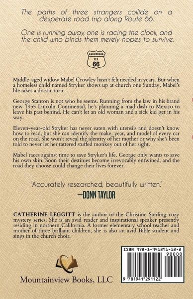 The paths of three strangers collide on a desperate road trip along Route 66. One is running away, one is racing the clock, and the child who binds them merely hopes to survive. Middle-aged widow Mabel Crowley hasn't felt needed in years. But when a homeless child named Stryker shows up at church one Sunday, Mabel's life takes a drastic turn. George Stanton is not who he seems. Running from the law in his brand new 1955 Lincoln Continental, he's planning a mad dash to Mexico to leave his past behind. He can't let an old woman and a sick kid get in his way. Eleven-year-old Stryker has never eaten with utensils and doesn't know how to read, but she can identify the make, year, and model of every car on the road. She won't reveal the identity of her mother or why she's been told to never let her tattered stuffed monkey out of her sight. Mabel races against time to save Stryker's life. George only wants to save his own skin. Soon their destinies become irrevocably entwined, and the road they choose could change their lives forever.