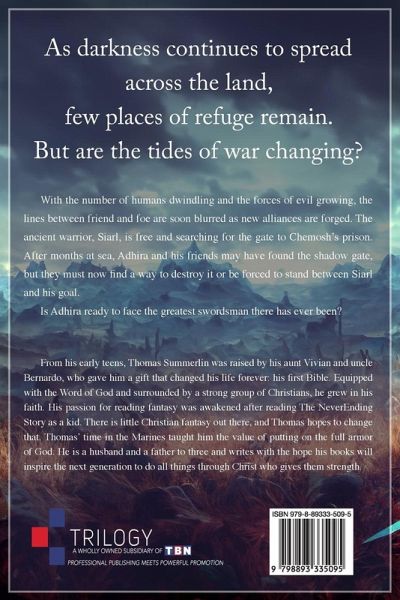 As darkness continues to spread across the land, few places of refuge remain. But are the tides of war changing? With the number of humans dwindling and the forces of evil growing, the lines between friend and foe are soon blurred as new alliances are forged. The ancient warrior, Siarl, is free and searching for the gate to Chemosh's prison. After months at sea, Adhira and his friends may have found the shadow gate, but they must now find a way to destroy it or be forced to stand between Siarl and his goal. Is Adhira ready to face the greatest swordsman there has ever been?