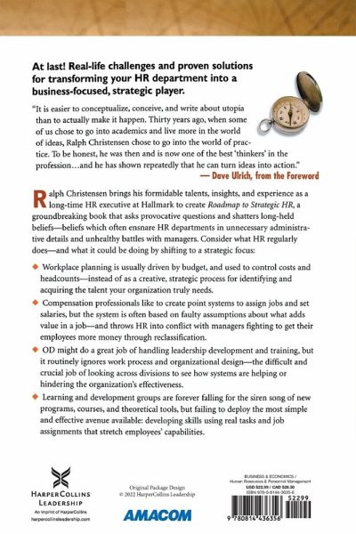 This guide is a sorely needed prescription for achieving strategic focus in complex organizations. Drawn from the author's 25+ years of experience and insights as an HR practitioner at Hallmark and other companies, Roadmap to Strategic HR outlines a 10-step, results-oriented plan for making the transition. It helps you integrate top-quality tactical work with innovative internal systems -- talent systems, training systems, reward systems, or work processes -- that will meet the strategic business demands of your organization. Easy-to-read, thought-provoking, and packed with real-world examples of what worked and what didn't at Hallmark, this book helps you: Boil down the reams of research and concepts into a comprehensible plan you can successfully implement. Understand the business realities that are driving change, including employees afraid for their jobs, and demanding and scarce customers. Compress the multitude of HR activities into five fundamental processes: workforce planning and staffing, learning and development, organization development, performance management, and employee relations. Examine each of the five processes through a powerful strategic lens. Resolve the tensions between HR specialists and HR generalists. Build a real partnership between the frontline managers and HR staff. Identify the competencies required of HR professionals who assume the crucial role of "organizational architect." The connection between people issues and business success is irrefutable. Roadmap to Strategic HR is the most succinct, most practical book available for strengthening the link between people and value -- for building a department that drives excellence throughout the organization -- and for honing your department's focus so that it stays locked on the marketplace and the business strategy.