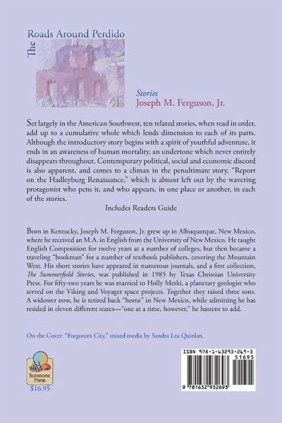 Set largely in the American Southwest, ten related stories, when read in order, add up to a cumulative whole which lends dimension to each of its parts. Although the introductory story begins with a spirit of youthful adventure, it ends in an awareness of human mortality, an undertone which never entirely disappears throughout. Contemporary political, social and economic discord is also apparent, and comes to a climax in the penultimate story, "Report on the Hadleyburg Renaissance," which is almost left out by the wavering protagonist who pens it, and who appears, in one place or another, in each of the stories. Includes Readers Guide
