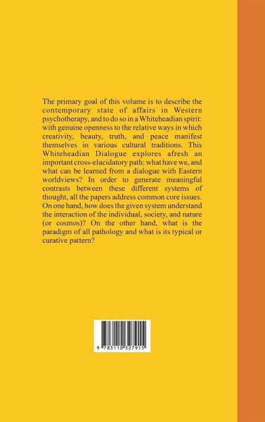The primary goal of this volume is to describe the contemporary state of affairs in Western psychotherapy, and to do so in a Whiteheadian spirit: with genuine openness to the relative ways in which creativity, beauty, truth, and peace manifest themselves in various cultural traditions. This Whiteheadian Dialogue explores afresh an important cross-elucidatory path: what have we, and what can be learned from a dialogue with Eastern worldviews? In order to generate meaningful contrasts between these different systems of thought, all the papers address common core issues. On one hand, how does the given system understand the interaction of the individual, society, and nature (or cosmos)? On the other hand, what is the paradigm of all pathology and what is its typical or curative pattern?